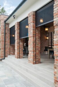 Our retractable screens with clear vinyl keep your space warm when it’s chilly out and cool when it’s warm. They’re often installed as part of a dual roller system that allows you to choose between a traditional mesh screen and the hardier vinyl.