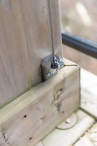 We install most of our motorized screens with a track system that is surface-mounted or recessed into your structure. But if your project is flanked by open corners, or decorative columns, or you want an exterior mounted solar shade, we’ll install your screen using a self-tensioning cable-guide system that doesn’t need posts or tracks.