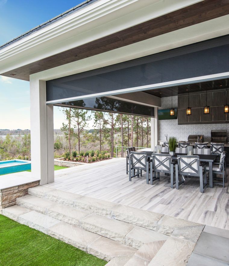 Our retractable patio screens are designed to eliminate all pesky bugs, create privacy from neighbors, and keep out the wind and rain.